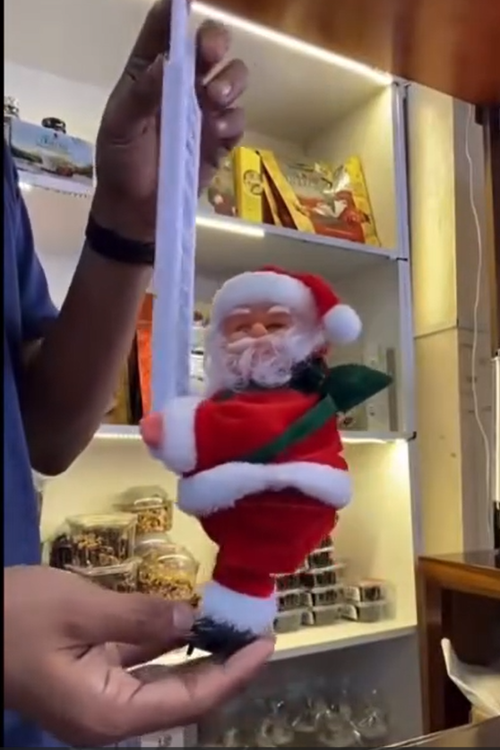 Mientras otros adornos se quedan quietos, este Papá Noel no para de subir y bajar.